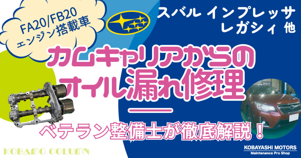 「エンジンルームからオイル臭がする」「駐車場にオイルの染みができた」「車検時にオイル滲みを指摘された」 こういったご相談、FA(BRZ・86・レヴォーグ / FB(インプレッサ・フォレスターなど)搭載車両で非常に多くいただきます