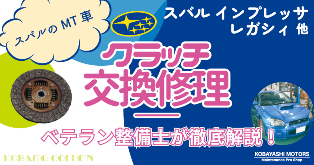 特にMTのスバル車(BH・BE・BP・BL・GR・GV・BRZ系・旧インプレッサなど)は10万km超えあたりからクラッチ交換のタイミングになります