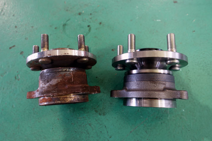スバル車ではホイールハブと一体になったユニット構造で、一体型ハブベアリングAssyとして交換されます