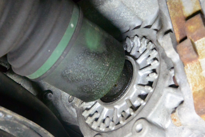 • デフケースとドライブシャフトの付け根周辺にオイル滲み / ギアオイルの焼け臭