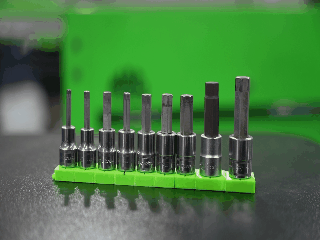 • Snap-onのトルクスのように、小さいサイズは1/4、中から3/8というような差込規格の混在も1本のレール上に並べられる